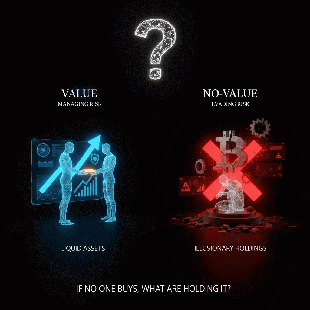 Với một tài sản có giá trị nội tại, câu trả lời thường vẫn tồn tại: bạn còn quyền sử dụng, còn dòng tiền, hoặc còn một công năng nào đó. Với một tài sản chỉ tồn tại nhờ kỳ vọng giá lên, câu trả lời thường là: không còn gì ngoài chính nó.