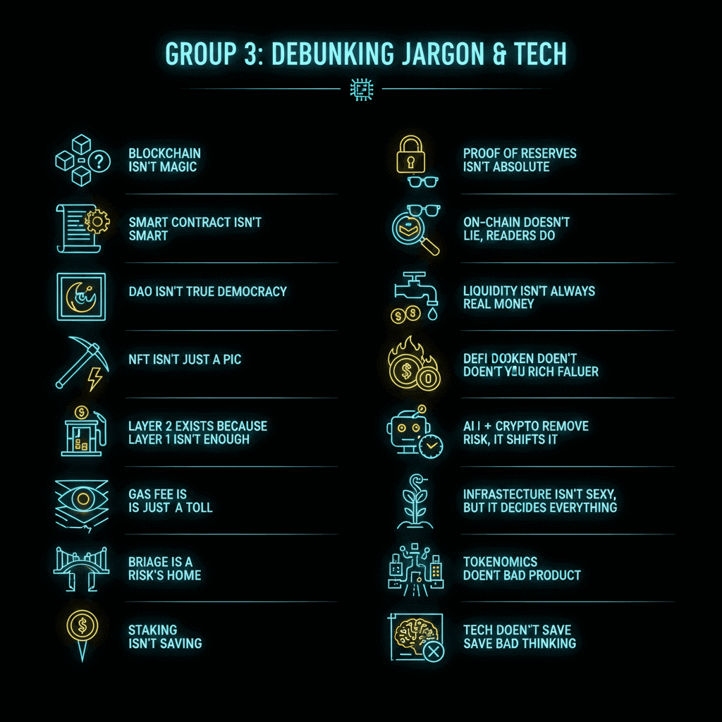 “Giải ảo thuật ngữ & công nghệ” không phải là nhóm bài để chứng minh rằng blockchain không có giá trị. Nó chỉ làm một việc khác: tách cái gì là công cụ, cái gì là kỳ vọng, và cái gì là thực tại vận hành.