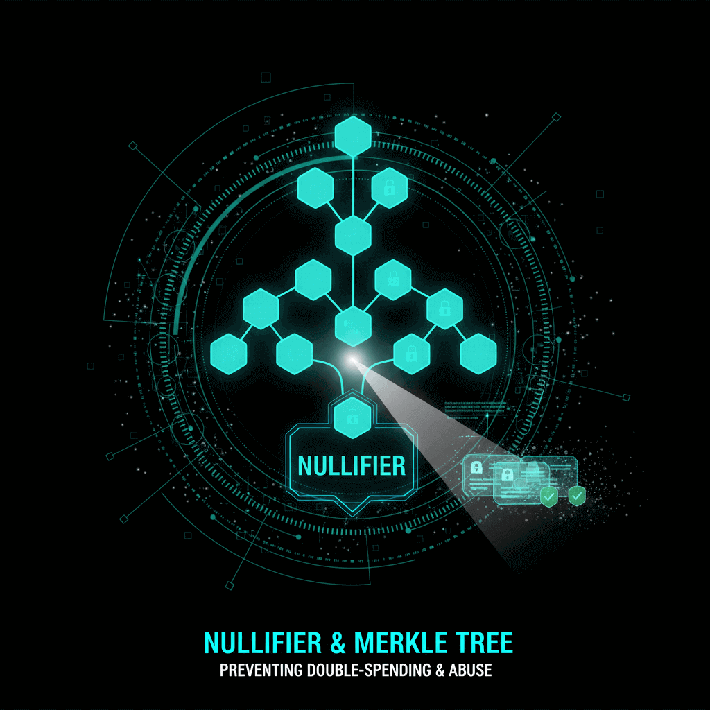 Nullifier và Merkle Tree là hai khối xây dựng kỹ thuật được thiết kế để giải quyết mâu thuẫn này, cho phép ngăn chặn double spending mà không phá vỡ anonymity.