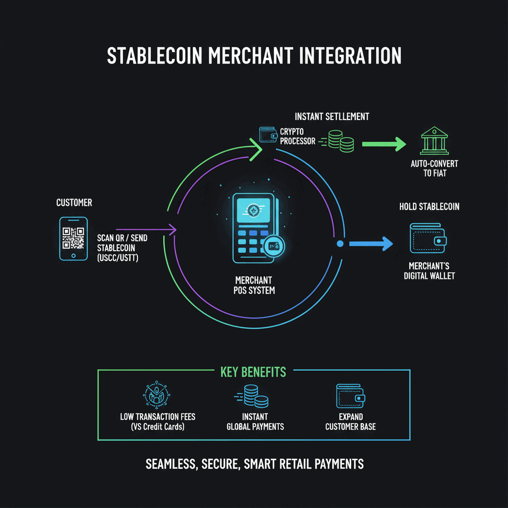 Cơ chế tích hợp stablecoin vào merchant system